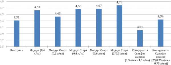 • Моддус® та Моддус® Старт різниця в урожайності становить від 300 до 600 кг/га;