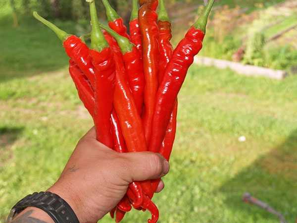 • Кроме этого, проводят профилактическую обработку культуры от фитофтороза, опрыскивая 2-3 раза за сезон бордоской жидкостью. По мере созревания перца чили, красные плоды снимают вместе с хвостиком.