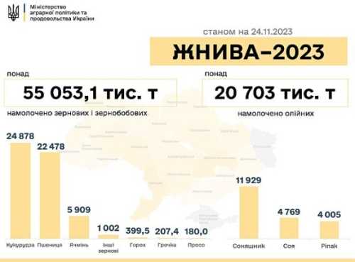 В Україні поступово завершується збір врожаю. Одещина, Миколаївщина та Запоріжжя вже повністю закінчили жнива. Станом на третій тиждень листопада аграрії намолотили 75,7 млн тонн зернових та олійних культур.