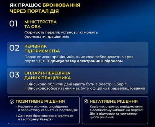 - керівник подає через портал Дія заяву про бронювання та засвідчує її електронним підписом;